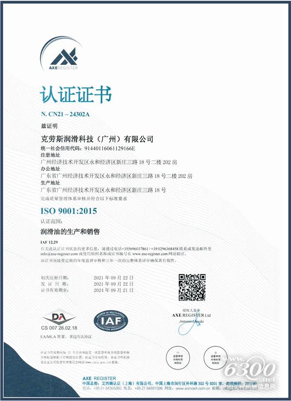 經(jīng)過(guò)嚴(yán)格審核,評(píng)審組專(zhuān)家一致認(rèn)為克勞斯?jié)櫥透黜?xiàng)目均達(dá)到2015最新版ISO9001質(zhì)量管理體系與ISO14001環(huán)境管理體系規(guī)定標(biāo)準(zhǔn),并于2021年9月22日正式獲得ISO9001:2015質(zhì)量管理體系、ISO14001:2015證書(shū)。