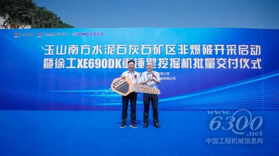 7月30日,“南方水泥玉山石灰石礦區(qū)非爆破開采啟動暨徐工XE690DK MAX挖掘機(jī)批量交付儀式”在江西上饒玉山隆重舉行,開啟綠色礦山開采新篇章。