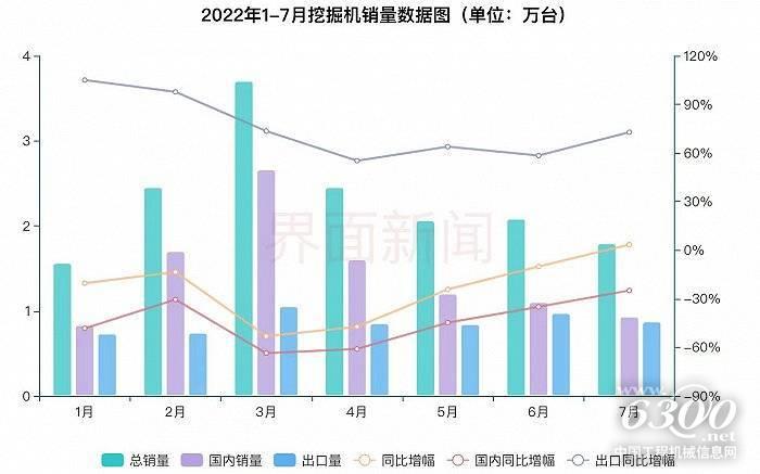 7月,挖掘機(jī)總銷(xiāo)量實(shí)現(xiàn)微增3.4%,國(guó)內(nèi)銷(xiāo)量降幅也有所收窄。