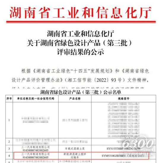 綠色標準引領綠色產(chǎn)品。近日,三一新能源混凝土攪拌車SYM5310GJB3BEV(純電動 31T)和三一車載式混凝土泵 SY5153THBF-10023C-10SE入選了湖南省綠色設計產(chǎn)品(第三批)公示名單。