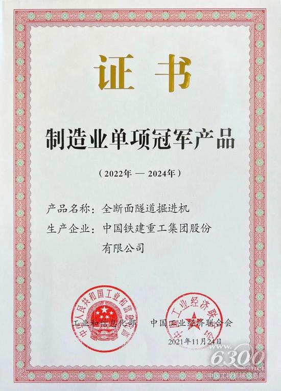 鐵建重工全斷面隧道掘進(jìn)機(jī)蟬聯(lián)工信部“制造業(yè)單項(xiàng)冠軍產(chǎn)品”殊榮