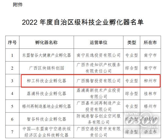 近日,自治區(qū)科學(xué)技術(shù)廳公布《2022年度自治區(qū)級科技企業(yè)孵化器名單》,柳工科技企業(yè)孵化器榜上有名,是此次柳州市唯一上榜的孵化器。