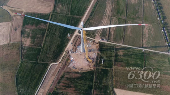 近日,在湖北襄陽(yáng),襄北風(fēng)儲(chǔ)一體化風(fēng)電場(chǎng)的首臺(tái)大高度、大兆瓦混塔風(fēng)電機(jī)組由安徽金服公司吊裝完工,施工主力設(shè)備采用徐工千噸級(jí)履帶起重機(jī)——XGC15000A。本次吊裝的5MW機(jī)組單片長(zhǎng)度97米,最大直徑達(dá)到200米,輪轂中心高度達(dá)到166米,此前國(guó)內(nèi)的紀(jì)錄是直徑191米與高度160米。