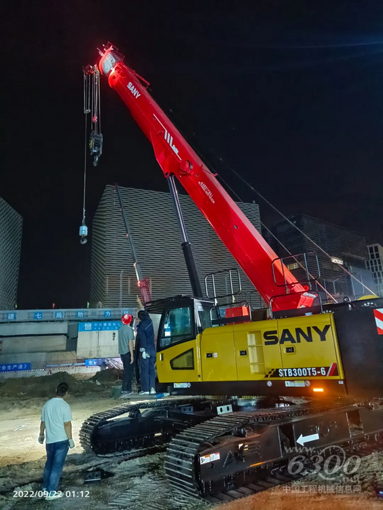 STB300T5-6入場后,面對惡劣的施工環(huán)境,優(yōu)勢盡顯。它標(biāo)配四輪一帶,傾斜4°仍可吊裝,不用耗費精力平整路面。在泥濘的路面上帶載行走也毫無壓力,旋挖鉆完成鉆孔后,它再將鋼筋籠吊載到孔口,并將其放入孔中結(jié)束下籠,一套動作一氣呵成,施工效率大幅提升。