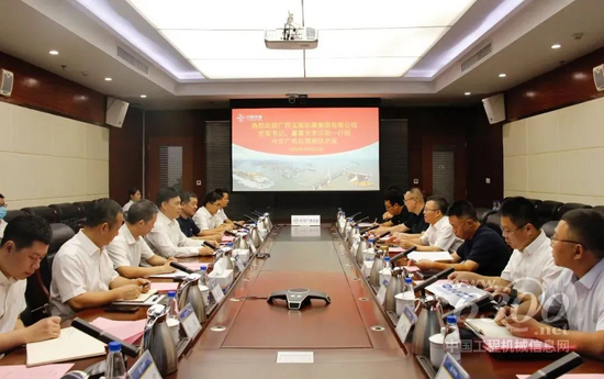 在中國(guó)建筑廣西總部,劉延峰與李漢陽(yáng)一行進(jìn)行會(huì)談。
