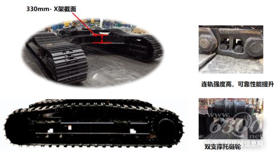 行走裝置:采用330mmX架截面,可靠性能提升。40噸級回轉(zhuǎn)支承,行走全面采用GM75,爬坡和轉(zhuǎn)彎能力強(qiáng)。