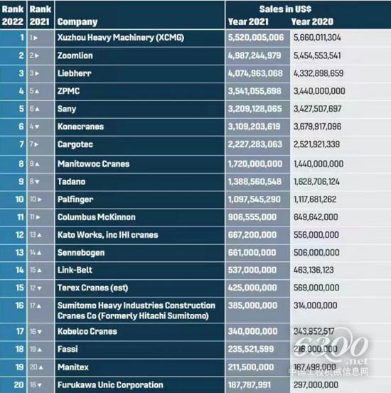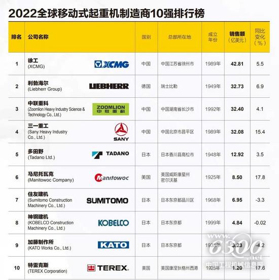 “2022全球移動(dòng)式起重機(jī)制造商10強(qiáng)”排行榜