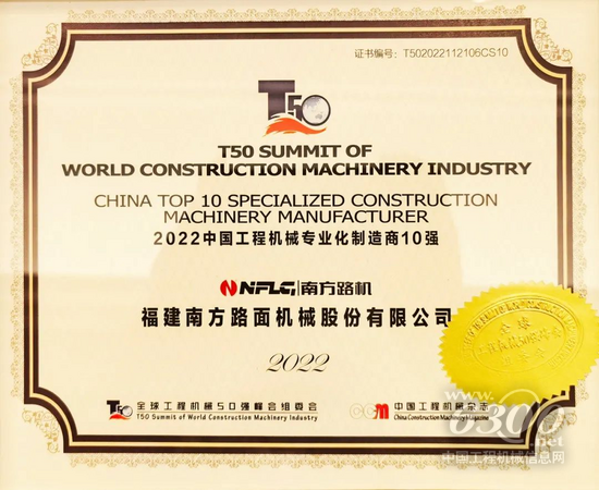 全球工程機械50強峰會是工程機械行業(yè)內(nèi)最具權(quán)威、影響力的會議,讓與會者對未來全球及中國工程機械產(chǎn)業(yè)發(fā)展、市場運行擁有了更為清晰地了解和認識,大會同期還發(fā)布眾多行業(yè)排行,并舉辦盛大頒獎晚宴,南方路機斬獲多項榮譽。南方路機上榜“中國工程機械專業(yè)化制造商10強”,南方路機董事長方慶熙上榜“中國工程機械產(chǎn)業(yè)影響力50人”,南方路機移動破碎設(shè)備由于出色表現(xiàn)榮膺“2022 T50工程機械應(yīng)用案例”,可謂滿載而歸。