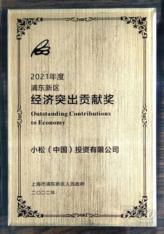 2022年11月23日,由上海市浦東新區(qū)人民政府主辦的“2021年度浦東新區(qū)經(jīng)濟(jì)突出貢獻(xiàn)企業(yè)表彰活動(dòng)”在上海國際會(huì)議中心盛大舉行,以表彰在2021年度為浦東新區(qū)的經(jīng)濟(jì)發(fā)展做出突出貢獻(xiàn)的企業(yè),小松(中國)投資有限公司榮獲“經(jīng)濟(jì)突出貢獻(xiàn)獎(jiǎng)”。