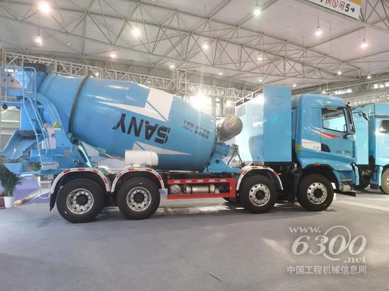 走進(jìn)三一展區(qū),一輛藍(lán)色的三一電動(dòng)攪拌車映入眼簾。