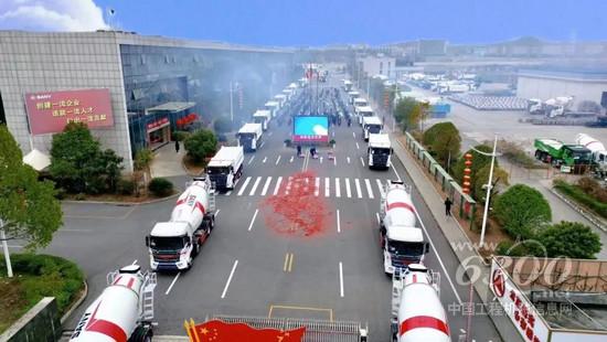 邵陽產(chǎn)業(yè)園,188臺(tái)身披紅花的攪拌車、自卸車排成了2公里長龍緩緩從廠區(qū)駛過,從廠門魚貫而出,吸引大量市民駐足觀看。