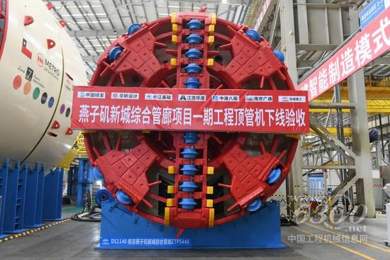 針對復雜頂進工況,鐵建重工和中建八局攻堅克難,共同打造“鐵軍號”泥水平衡頂管機。設備開挖直徑5.47米,主機長度約7米,整機總重量約300噸,在國內(nèi)首次采用鄂式巖石破碎系統(tǒng)、超前地質(zhì)預報系統(tǒng)、膨潤土自動注漿技術、土倉可視化技術等,智能化程度高,為燕子磯綜合管廊工程順利貫通提供有效技術保障。