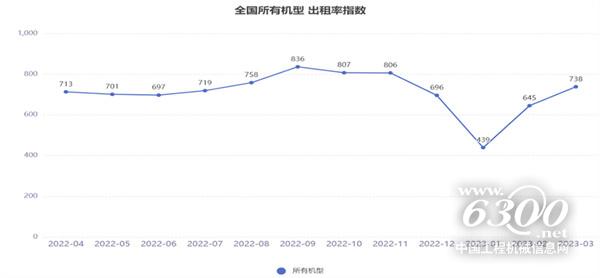 1.2023年3月升降工作平臺出租率環(huán)比上升幅度14.4%,同比增長7.4%
