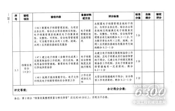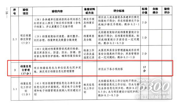 評分項目包含檔案工作保障體系、檔案收集整理質(zhì)量、檔案信息化管理等內(nèi)容,其中,檔案信息化管理部分標(biāo)準(zhǔn)分值占總分100分中的17分。
