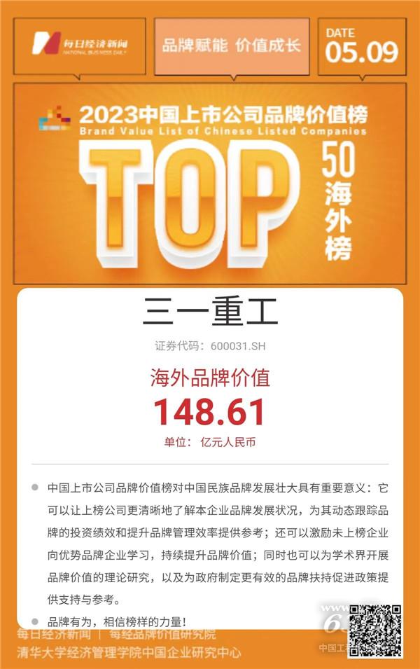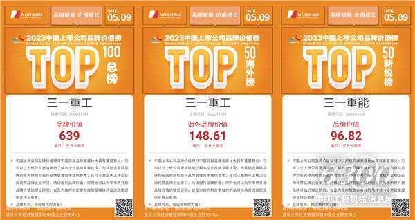 近日,2023中國上市公司品牌價值系列榜單重磅發(fā)布,三一連上三榜,彰顯強大的品牌實力。