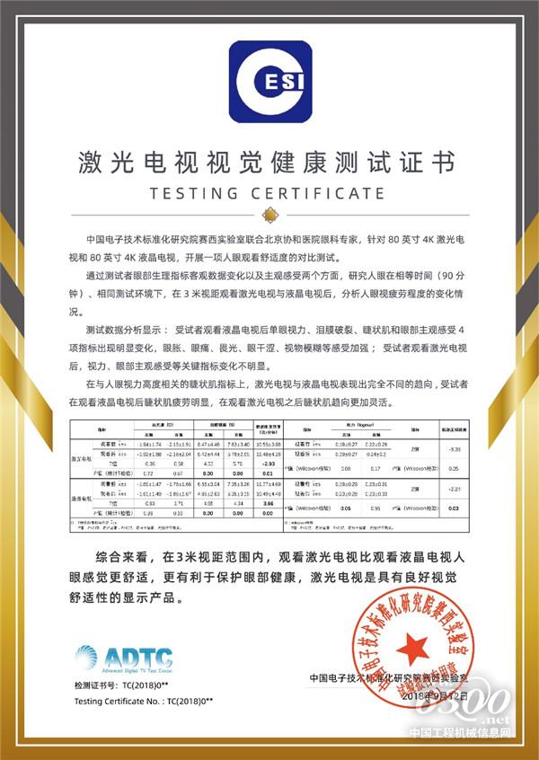 國(guó)家直屬權(quán)威檢測(cè)機(jī)構(gòu)中國(guó)電子技術(shù)標(biāo)準(zhǔn)化研究院賽西實(shí)驗(yàn)室和北京協(xié)和醫(yī)院眼科專家,通過(guò)人群相同條件下觀看激光電視和液晶電視的嚴(yán)格對(duì)比試驗(yàn),測(cè)試數(shù)據(jù)分析顯示:受試者觀看液晶電視后單眼視力、淚膜破裂、睫狀肌和眼部主觀感受4項(xiàng)指標(biāo)出現(xiàn)明顯變化,眼脹、眼痛、畏光、眼干澀、視物模糊等感受加強(qiáng);受試者觀看激光電視后,視力、眼部主觀感受等關(guān)鍵指標(biāo)變化不明顯。研究發(fā)現(xiàn):在3米視距范圍內(nèi),觀看激光電視比觀看液晶電視人眼感覺更舒適,更有利于保護(hù)眼部健康,激光電視是具有良好視覺舒適性的顯示產(chǎn)品。