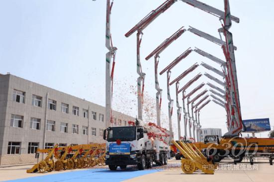 發(fā)車(chē)儀式現(xiàn)場(chǎng),泵車(chē)整齊列陣、臂架高舉,在烈日之下熠熠生輝。隨著一聲“發(fā)車(chē)”指令,徐工泵車(chē)從徐工智能化泵送機(jī)械產(chǎn)業(yè)基地緩緩駛出,奔赴“一帶一路”。