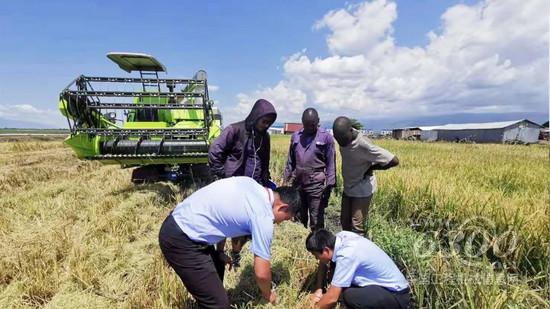 ▲中聯(lián)重科工程師們?yōu)榉侵揶r(nóng)民講解農(nóng)機(jī)