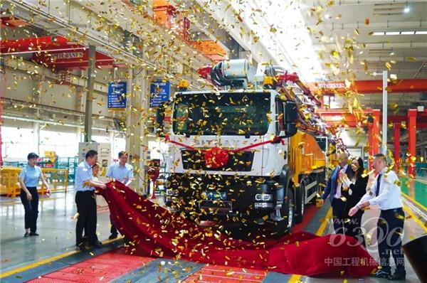 儀式上,隨著紅色布幕的揭幕,巨大的徐工混凝土設備逐漸顯露,金屬的光澤在燈光的照射下分外搶眼,數(shù)十臺設備即將奔赴“一帶一路”市場領域。