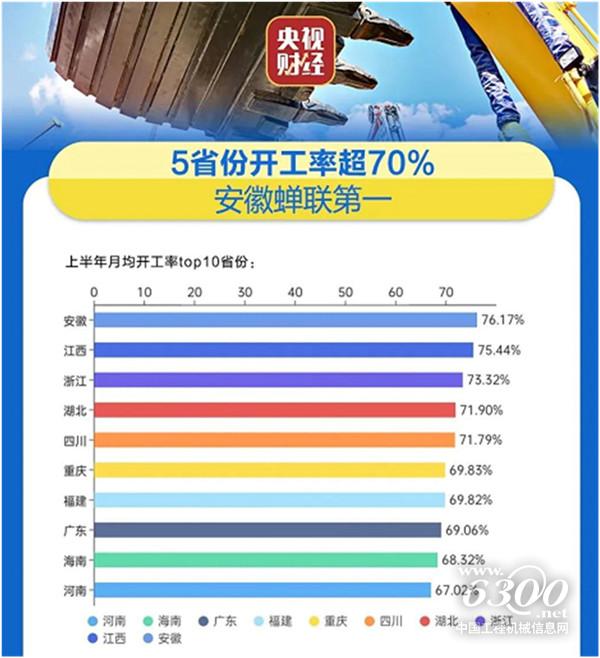 1.央視財經(jīng)挖掘機(jī)指數(shù):多地重大項目開工率超70%,安徽蟬聯(lián)第一;