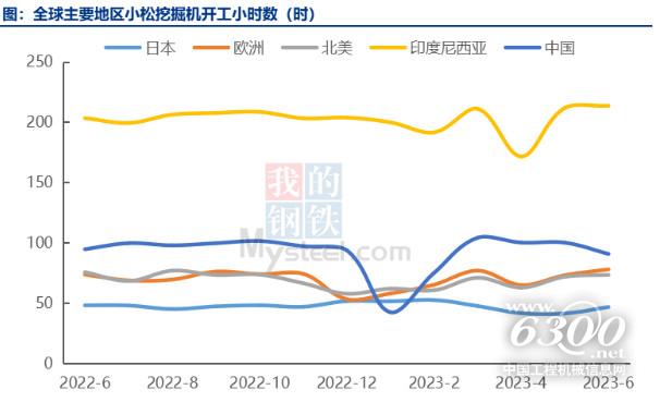 從全球其他地區(qū)來看,6月,日本、北美小松挖掘機開工小時數(shù)同比負增長,歐洲、印尼小松挖掘機開工小時數(shù)同比均呈現(xiàn)正增長。