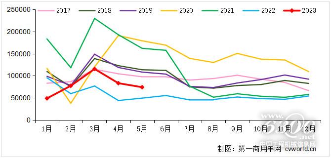2017-2023年我國重卡市場銷量走勢(單位:輛)