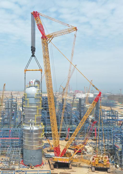 近日,金陵石化項(xiàng)目現(xiàn)場,徐工4000噸履帶式起重機(jī)XGC88000振臂一揮,輕松將一臺(tái)凈化裝置吸收塔穩(wěn)穩(wěn)起落。