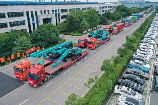 隨后,隨著長(zhǎng)沙經(jīng)開(kāi)區(qū)黨工委副書(shū)記趙文驕的一聲發(fā)車(chē)號(hào)令,滿載設(shè)備的車(chē)隊(duì)浩浩湯湯從山河工業(yè)城駛出,奔赴世界各地。發(fā)貨儀式后,山河智能還與兩家國(guó)際代理商分別簽訂高空機(jī)械、鑿巖設(shè)備批量采購(gòu)協(xié)議。