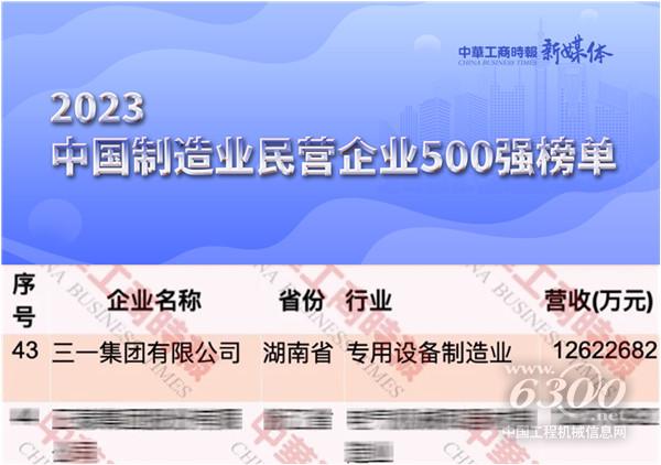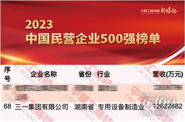 3.民營(yíng)企業(yè)500強(qiáng)榜單發(fā)布,三一蟬聯(lián)工程機(jī)械行業(yè)“雙料冠軍”;