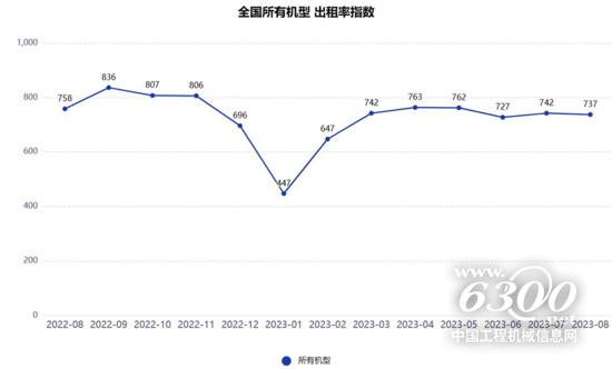 2023年8月升降工作平臺租賃行業(yè)出租率指數(shù)