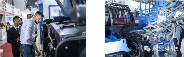 垣發(fā)集團(tuán)展品一經(jīng)展出,獲得了國內(nèi)外客戶的駐足觀看和深入交流。尤其是公司新型的多功能伸縮臂叉裝機(jī) T5018,因其最大作業(yè)高度可達(dá) 18 米、最大載重量可達(dá) 5 噸,實現(xiàn)整車前輪、四輪、蟹形轉(zhuǎn)向,無極變速、電液比例控制等方面的優(yōu)越性能,獲得了國內(nèi)外租賃市場客戶的廣泛贊譽(yù)。