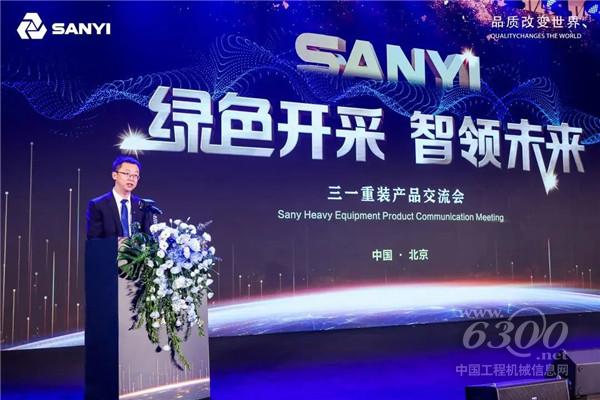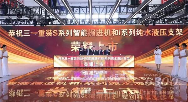 展會首日,三一重裝董事長戚建、總經(jīng)理曲小飛、常務副總經(jīng)理徐鵬飛、采掘研究院院長尹力、營銷公司總經(jīng)理孫郝共同上臺,正式揭開三一重裝新款S系列智能化掘進機EBZ200S神秘面紗。