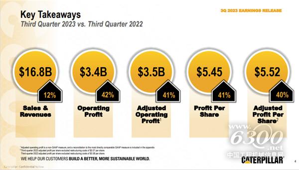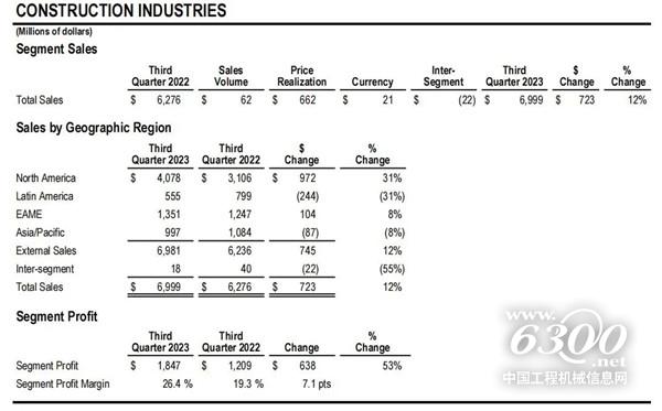 近日,卡特彼勒公布第三季度財報,2023年第三季度卡特彼勒實現(xiàn)營收168億美元,同比增長12%;實現(xiàn)凈利潤約27.94億美元,同比增長36.89%。卡特彼勒表示營收增長主要得益于合適的價格與高銷量。