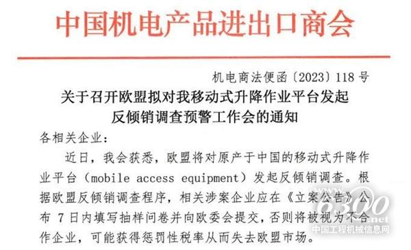 1.歐盟擬對(duì)中國(guó)移動(dòng)式升降作業(yè)平臺(tái)發(fā)起反傾銷調(diào)查;