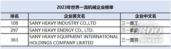 3.三一重工、三一重能、三一國(guó)際同時(shí)上榜2023年世界一流機(jī)械企業(yè)榜單;