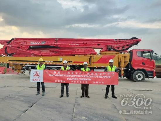 近日,首臺出口海外的三一重工S系列71米泵車在新加坡成功交付,創(chuàng)下國內(nèi)出口新加坡最長臂架泵車紀(jì)錄!