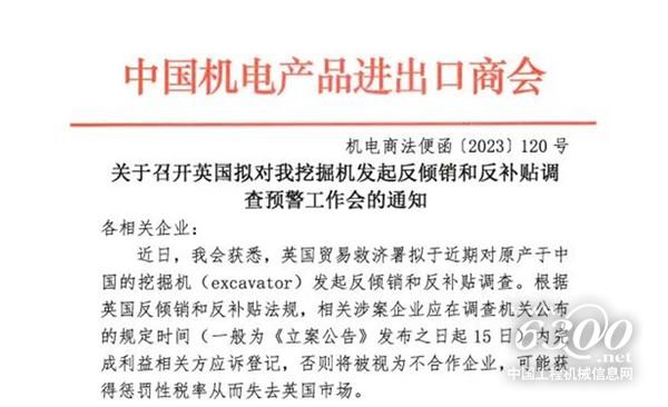 2.英國擬對(duì)我國挖掘機(jī)發(fā)起反傾銷和反補(bǔ)貼調(diào)查;