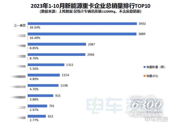 4.全國前10月新能源重卡市場(chǎng),三一市占率16.5%再奪冠;