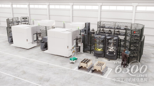 圖示:FPS是針對4-5軸銑床的模塊式自動化系統(tǒng),兼容300mm到630mm的機(jī)加托盤和零點(diǎn)托盤。足夠多的托盤容納量和自動生產(chǎn)調(diào)度功能,是主軸高切削率和熄燈生產(chǎn)的主要驅(qū)動力。