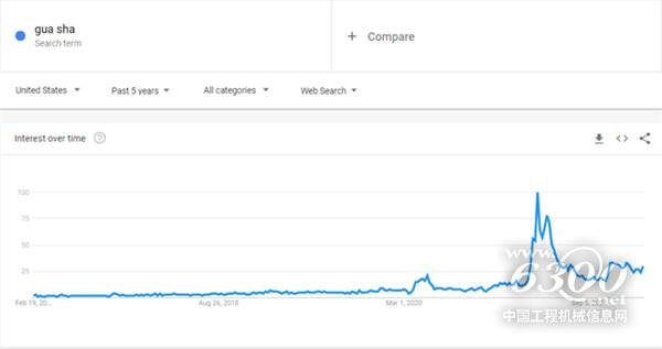 (以美國為范圍,gua sha谷歌搜索熱度過去5年的走勢圖)