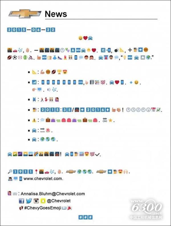 2015年,新聞稿領域殺出了一匹黑馬。它就是雪佛蘭針對新品發(fā)布的那篇純Emoji新聞稿。