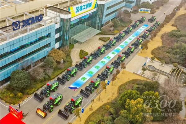 元旦剛過,徐工綠色化、數字化裝載機械制造基地內喜氣盈門,綠動先鋒徐工XC968-EV純電動裝載機莊嚴列隊、整裝待發(fā),翠綠色涂裝在陽光照耀下熠熠生輝。