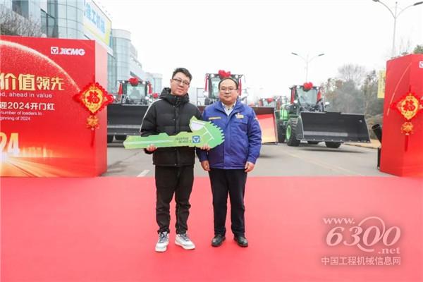 徐工鏟運副總經理、營銷公司總經理劉鵬向客戶交付象征雙方共贏的財富鑰匙