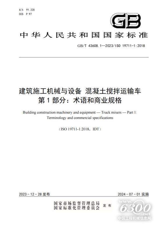 資料顯示,中聯(lián)重科牽頭編制的兩項(xiàng)國(guó)家標(biāo)準(zhǔn)分別是GB/T 43608.1-2023《建筑施工機(jī)械與設(shè)備 混凝土攪拌運(yùn)輸車 第1部分:術(shù)語和商業(yè)規(guī)格》和GB/T 43609.1-2023《建筑施工機(jī)械與設(shè)備 混凝土及砂漿制備設(shè)備 第1部分:術(shù)語和商業(yè)規(guī)格》。
