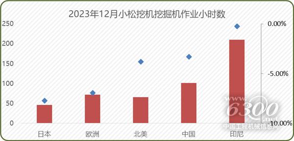 歐洲12月小松挖機(jī)開工小時數(shù)為49.6小時,同比下降7.0%,環(huán)比下降30.63%;