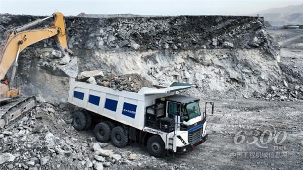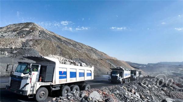 正在某礦山運(yùn)行的大型新能源礦用卡車EM165H