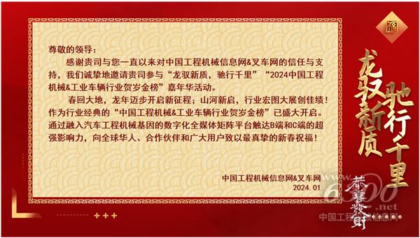 作為融入汽車和工程機(jī)械基因的工程機(jī)械&工業(yè)車輛行業(yè)頭部全媒體矩陣平臺(tái),中國工程機(jī)械信息網(wǎng)&叉車網(wǎng) (www.yuegoukeji.cn)隆重推出“龍馭新質(zhì),馳行千里”2024中國工程機(jī)械&工業(yè)車輛行業(yè)賀歲金榜嘉年華活動(dòng),與行業(yè)主流品牌企業(yè)和精英攜手點(diǎn)燃希望,寄語新瑞。