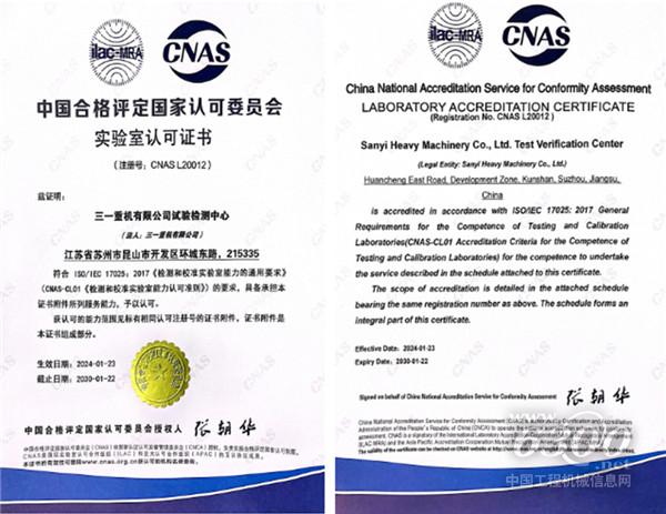 近日,三一重機(jī)有限公司試驗(yàn)檢測(cè)中心正式獲得中國(guó)合格評(píng)定國(guó)家認(rèn)可委員會(huì)(CNAS)批準(zhǔn)的CNAS實(shí)驗(yàn)室認(rèn)可證書(證書編號(hào):L20012),標(biāo)志著三一重機(jī)試驗(yàn)檢測(cè)中心已經(jīng)建立完成符合國(guó)際標(biāo)準(zhǔn)ISO/IEC17025:2017《檢測(cè)和校準(zhǔn)實(shí)驗(yàn)室能力的通用要求》的質(zhì)量管理體系,具備了國(guó)際認(rèn)可的管理水平和檢測(cè)技術(shù)能力。