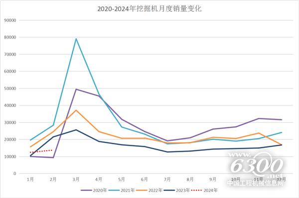 經(jīng)草根調(diào)查和市場(chǎng)研究,CME預(yù)估2024年2月挖掘機(jī)總銷量13700臺(tái)左右,同比下降36%左右,降幅環(huán)比擴(kuò)大。