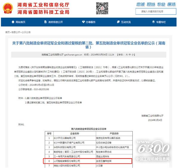 6.山河智能三度蟬聯(lián)國家制造業(yè)單項冠軍;